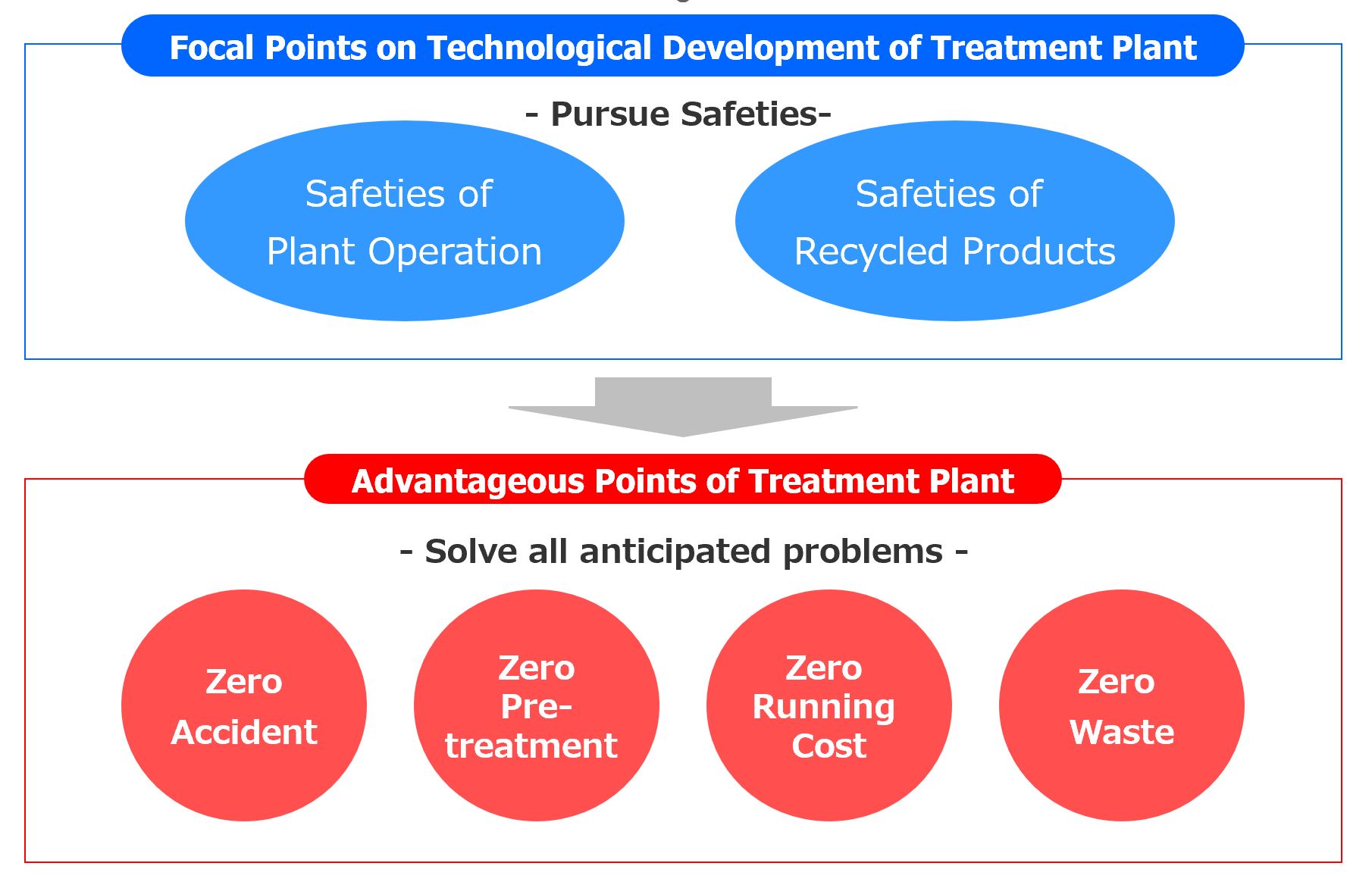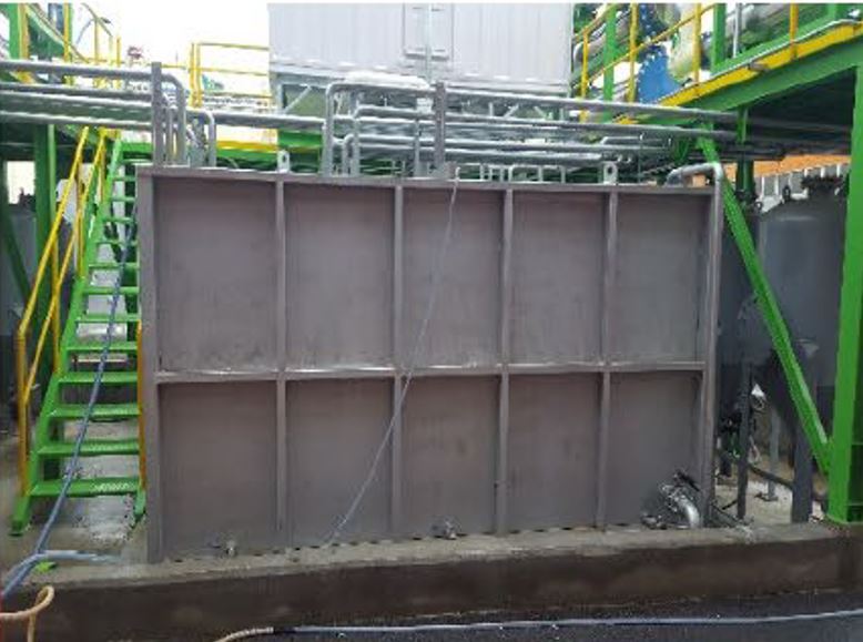 This plant processes the waste plastics, life-end rubber tires, home appliances of petroleum origin, etc. to produce pyrolysis oil (equivalent to diesel fuel oil).
